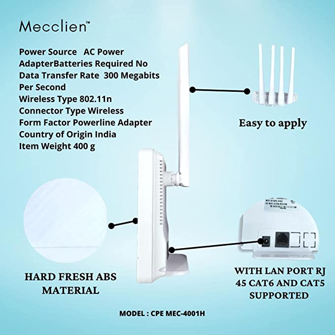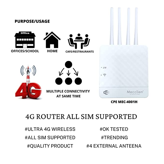 4 Antenna, Wireless CPE 300Mbps All Sim Supported Ultra High Speed All 4G Wi-Fi Router