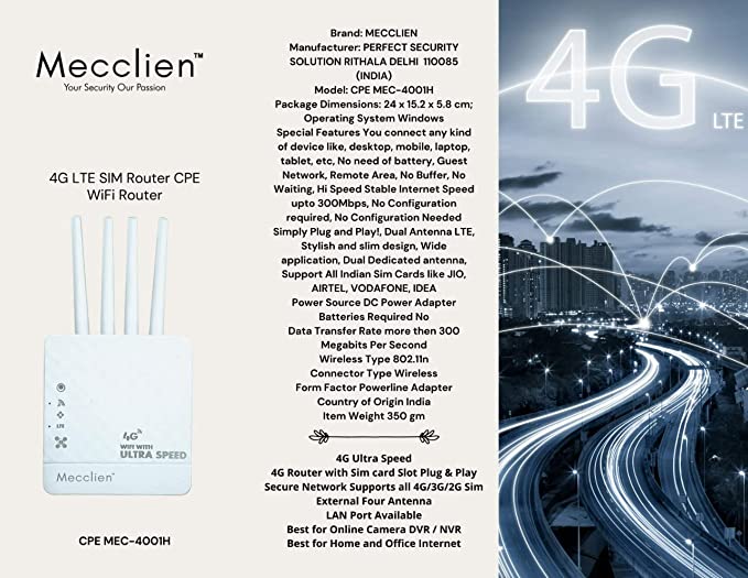 [Latest cutting edge tech] : Universal 4G 3G LTE 300Mbps WiFi Router with 1 LAN Port,ideal to connect DVR CCTV and access remotely