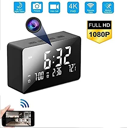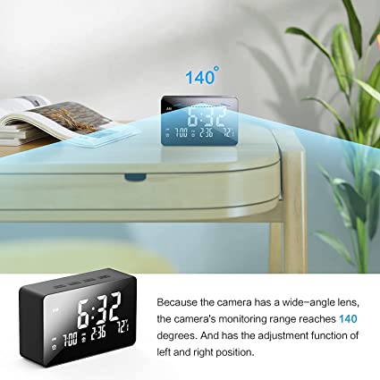 Alarm Clock with Camera. LED digital digits, easy to see what is the time date and temperature from a distance without any attention. Mini camera with 120 degree angle Lens Perfect for pet monitoring, nanny cam, security home guard.