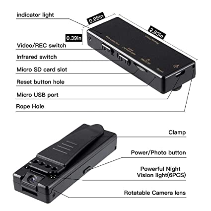 Full HD Video Audio Recording Camera Micro Pocket DVR with 6 IR Cop Police Camera Night Vision Full HD 1080p Portable Pocket Clips, Wearable Body Camera Recorder